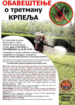 Третман ће се обавити на површинама у свим насељеним местима општине Бечеја.